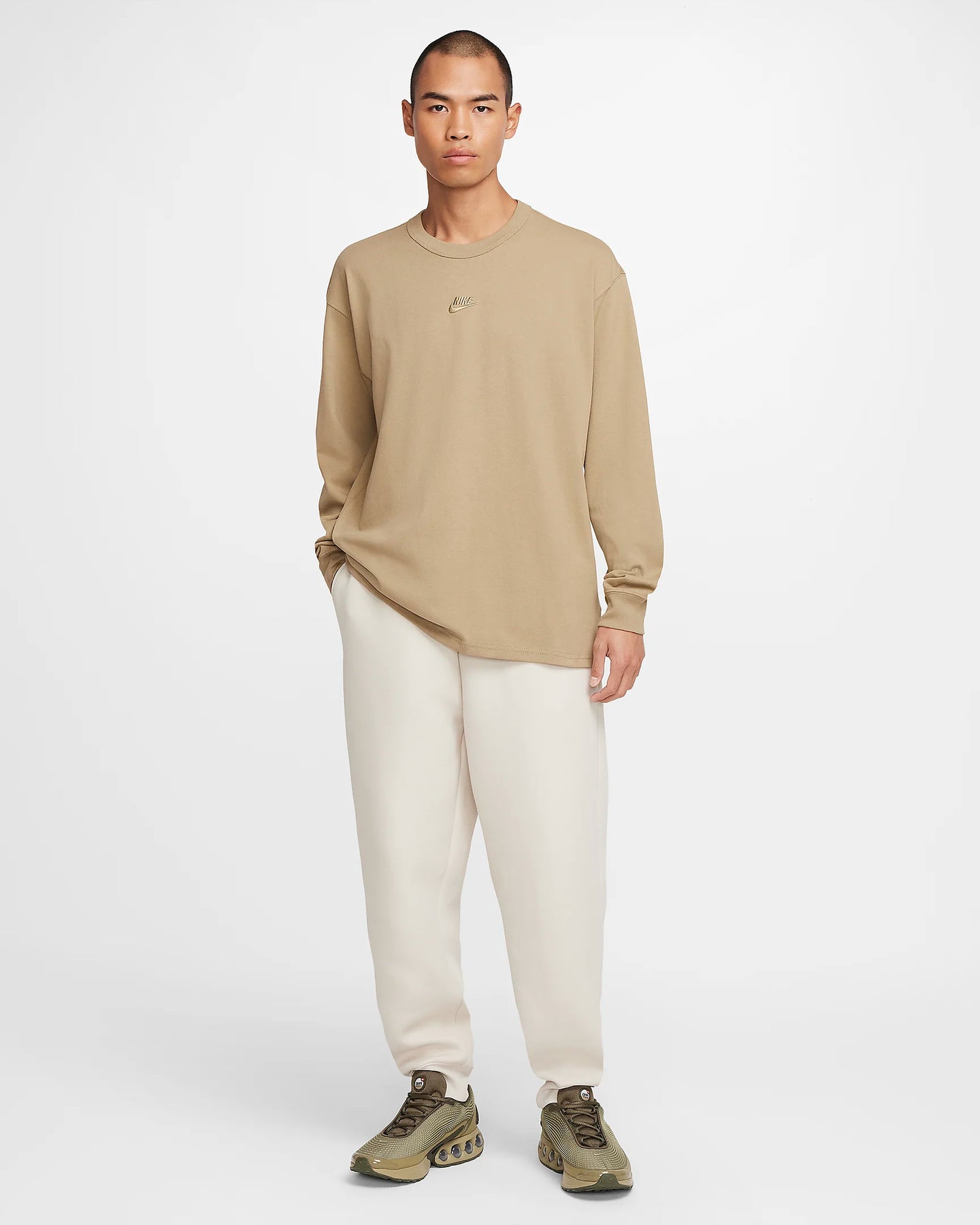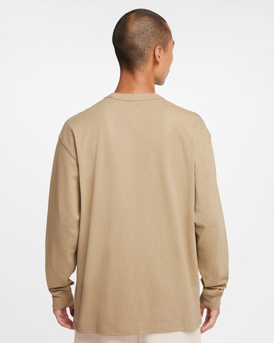 The Nike Sportswear Long-Sleeve T-Shirt has a loose fit for a carefree, comfortable look. Its heavyweight organic cotton fabric feels thick and soft. A subtle Futura logo at the center front offers a signature Nike look while a set-on collar ensures a clean, comfortable fit. This product is made with at least 75% organic cotton fibers.